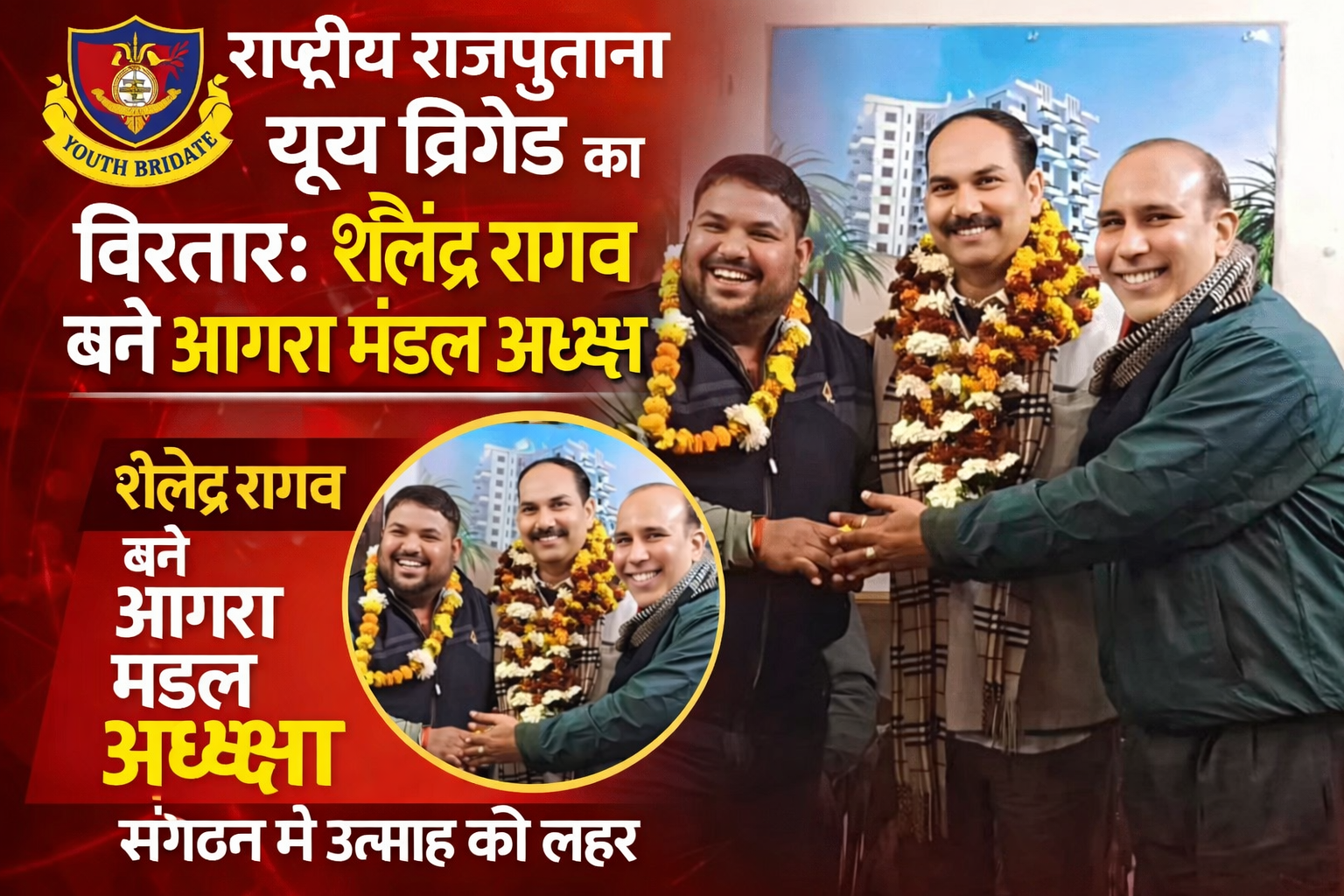 राष्ट्रीय राजपूताना यूथ ब्रिगेड की एक महत्वपूर्ण बैठक आज कार्यालय जनक प्लेस, राजपुर चुंगी, आगरा में आयोजित की गई। बैठक की अध्यक्षता संगठन के राष्ट्रीय सलाहकार श्री आर.एस. गहलोत जी ने की, जबकि संचालन राष्ट्रीय सह महासचिव श्री अमर राजावत जी द्वारा किया गया।
